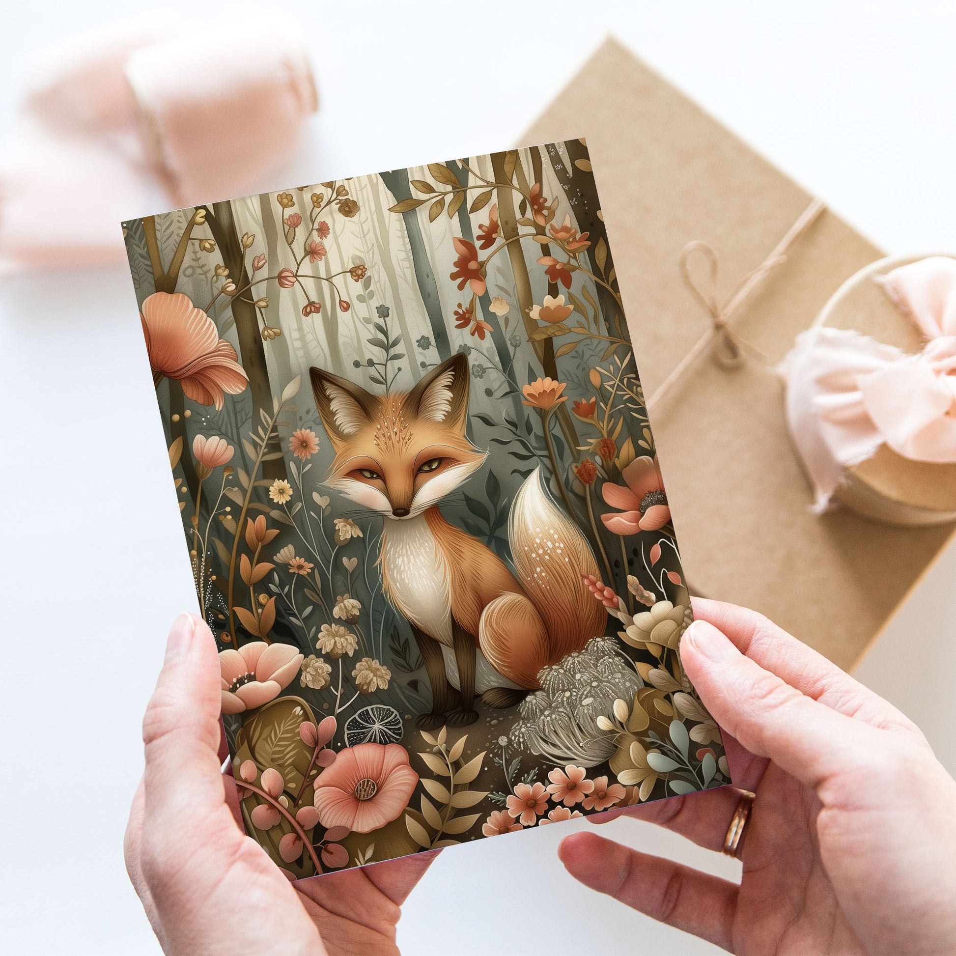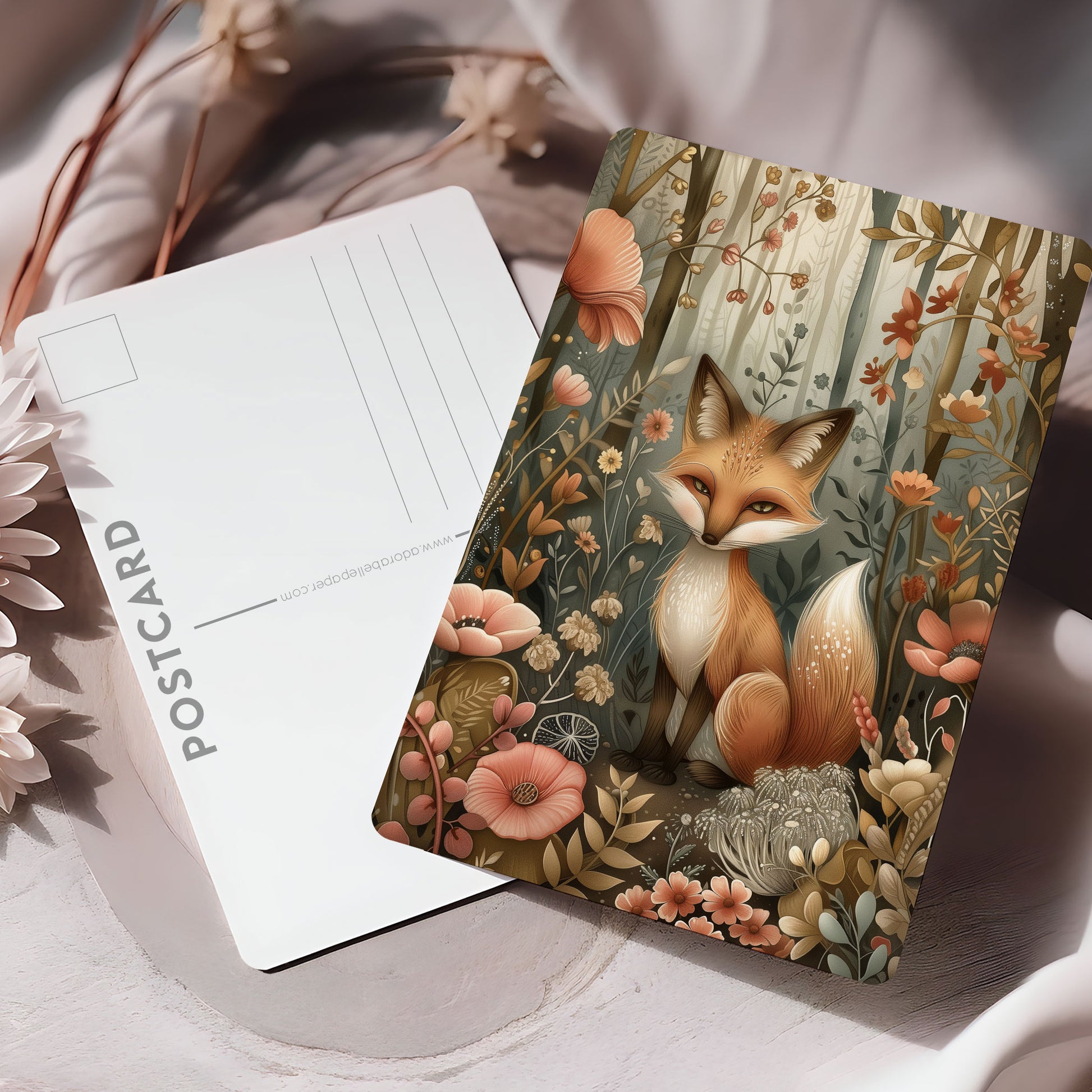 Vykort för postcrossing, scrapbooking & dekoration - Skogsmotiv Woodland - Räv PC535