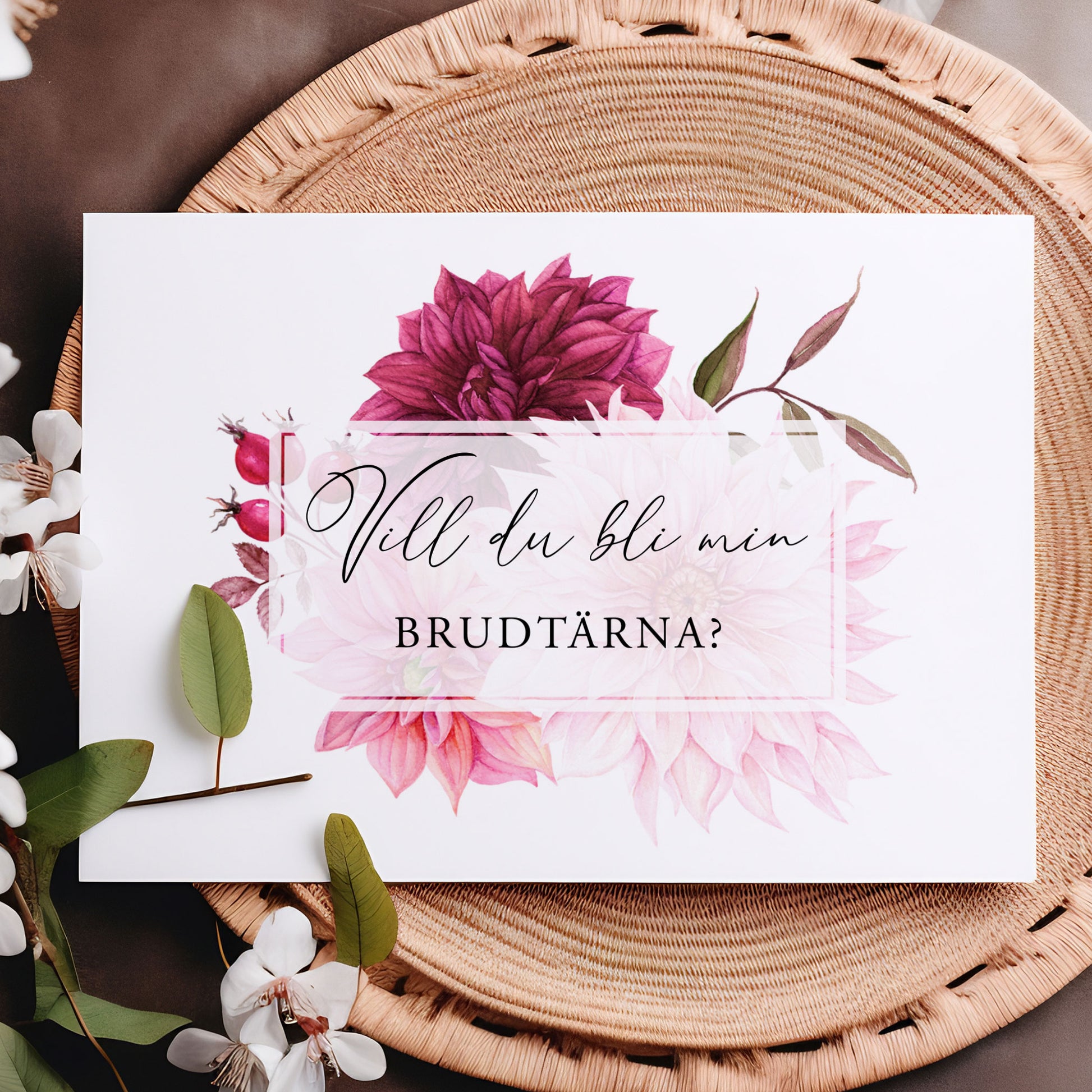 Vill du bli-kort – Burgundy Dahlia – A6 Tryckt fråga till brudfölje BR002