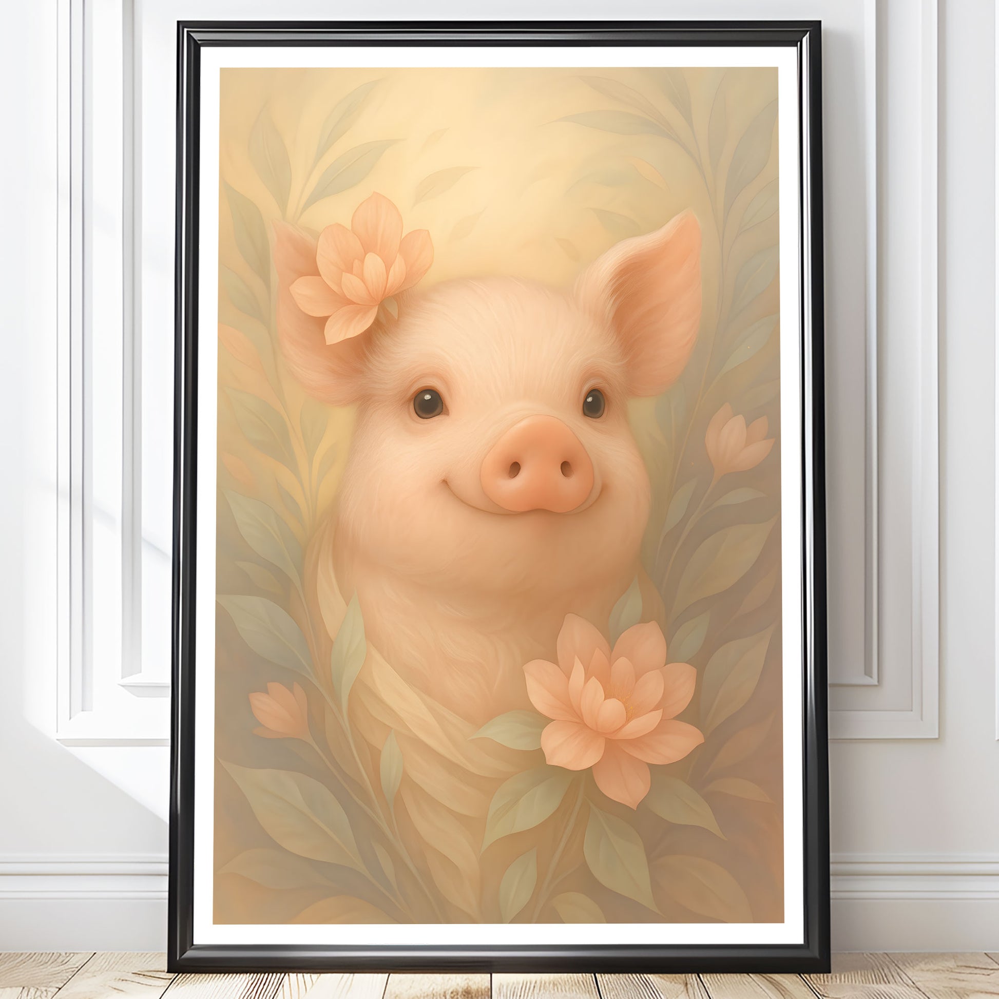 Poster Glad Gris - Bondgårdsdjur Art Print - Tryckt Poster i olika storlekar - PR88-14