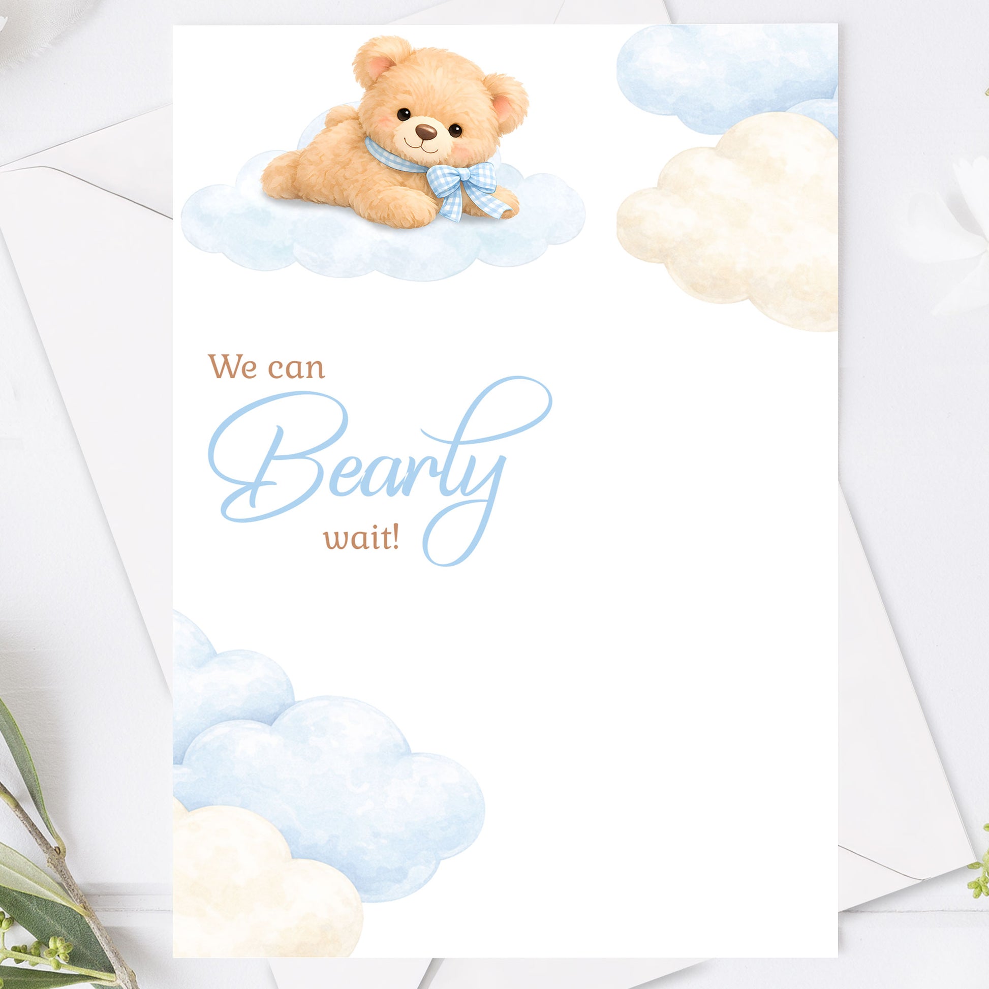 Baby Shower Inbjudan We can Bearly wait – Blå Teddy björn – BASH002