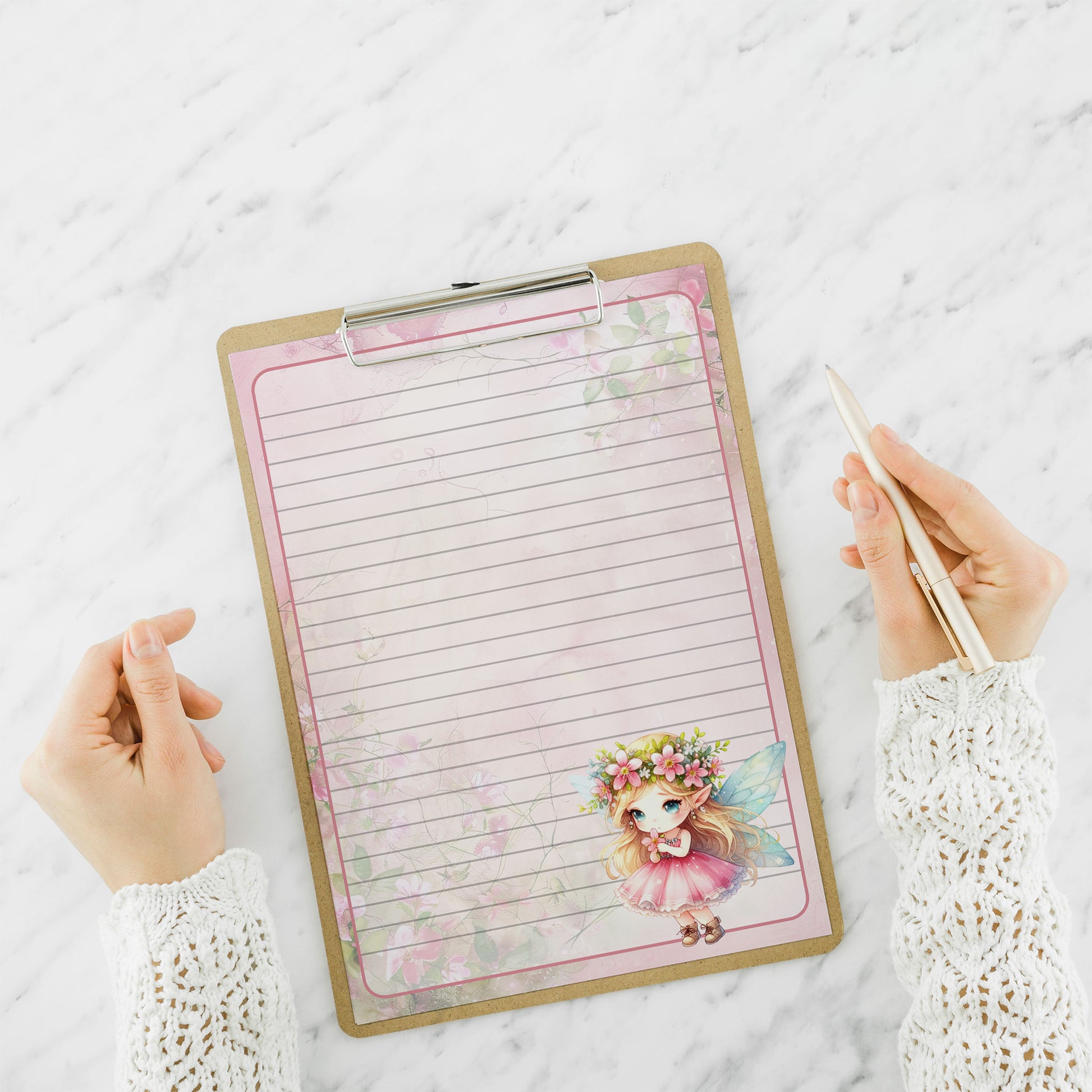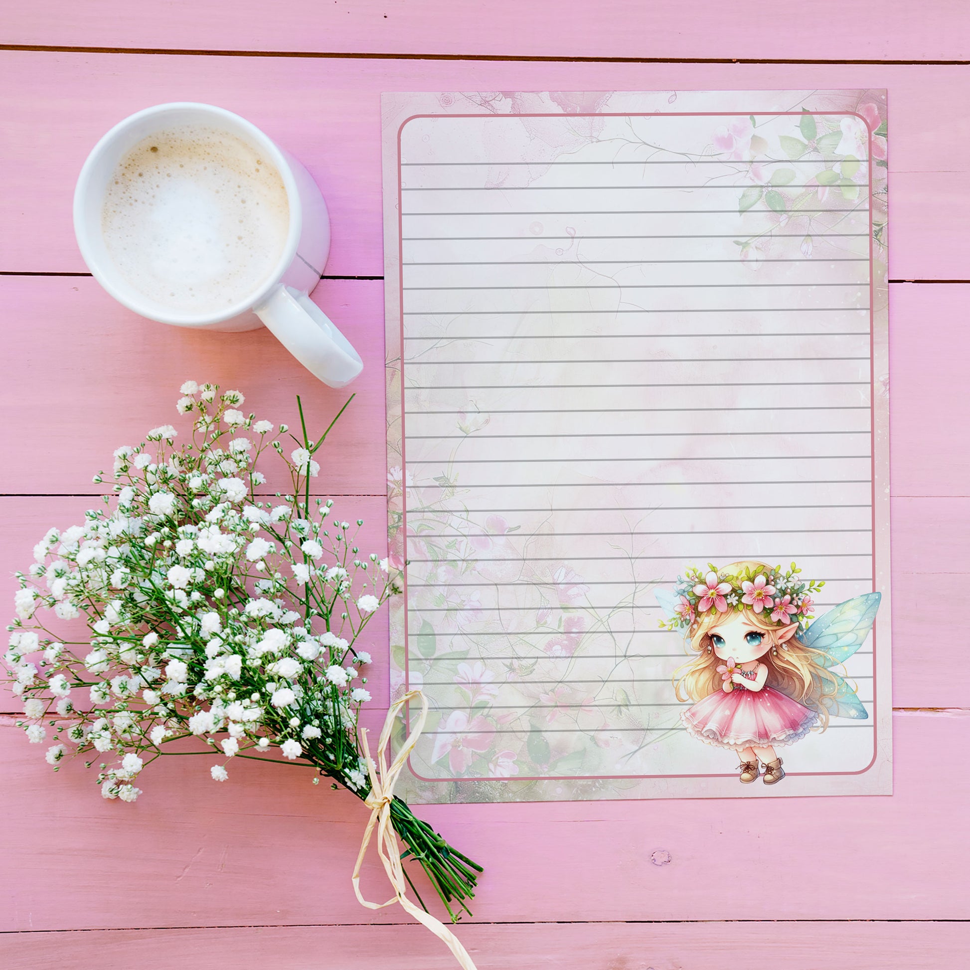 10-pack Brevpapper - Rosa Grön Skogsfé - Tryckt A5 Papper - WP511