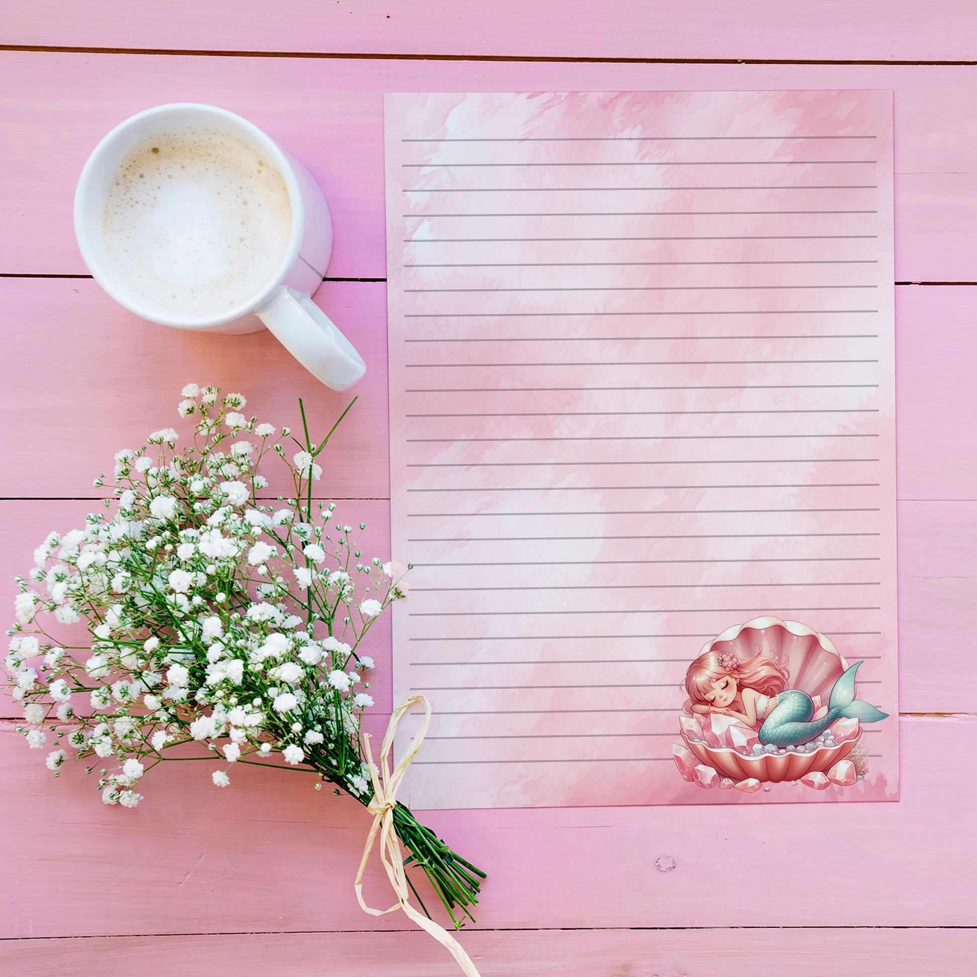 10-pack Brevpapper - Sovande Sjöjungfru - Tryckt A5 Papper - WP512