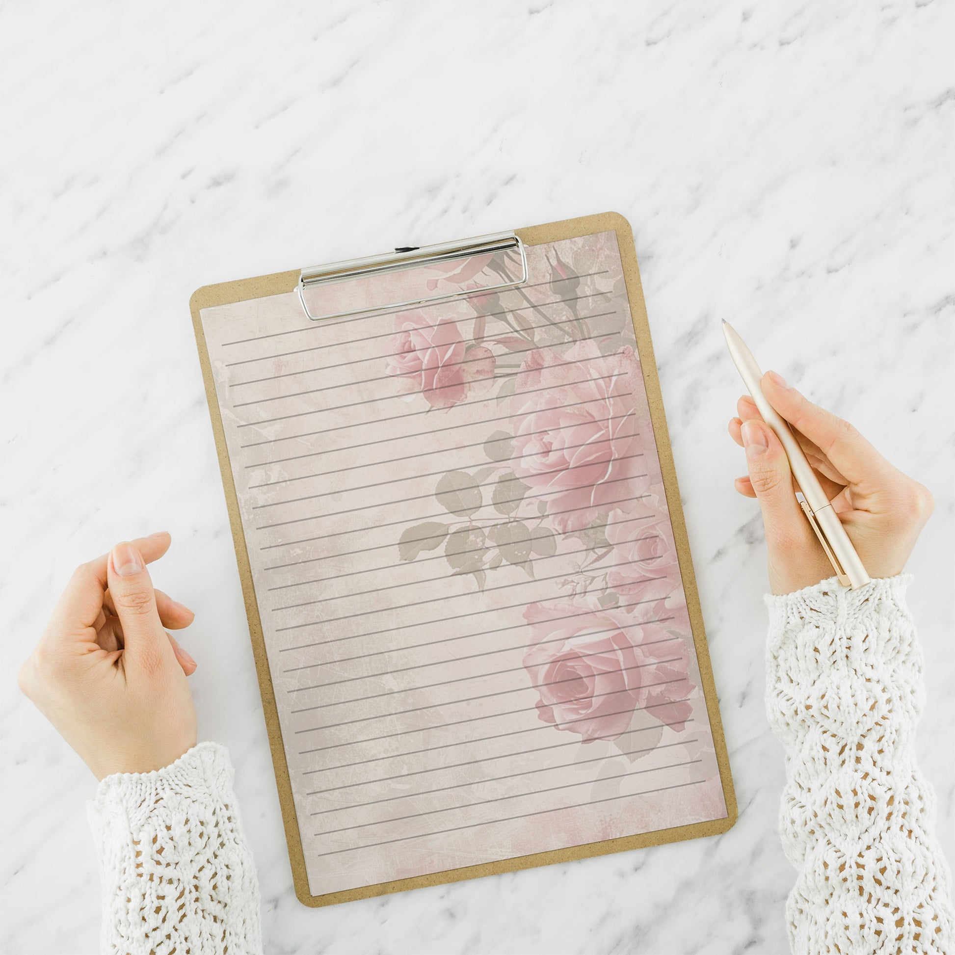 10-pack Brevpapper - Rosa & Beige - Blommor - Tryckt A5 Papper - WP513