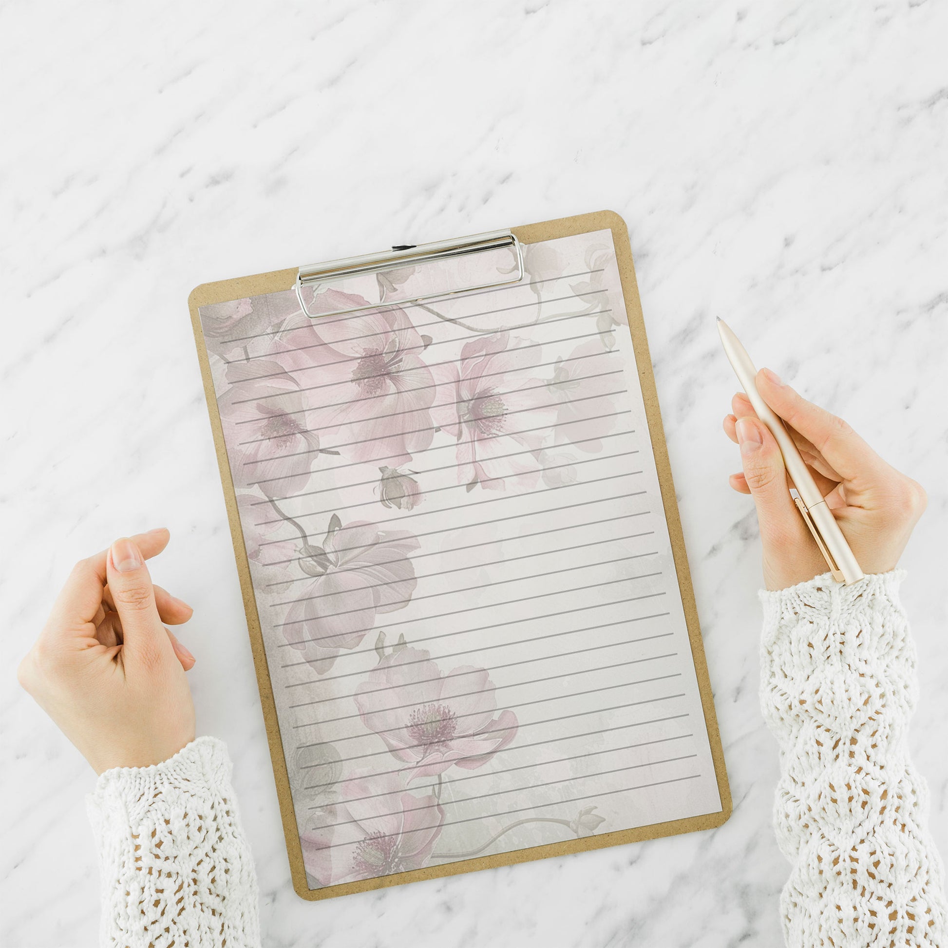 10-pack Brevpapper - Rosa & Beige - Blommor - Tryckt A5 Papper - WP515